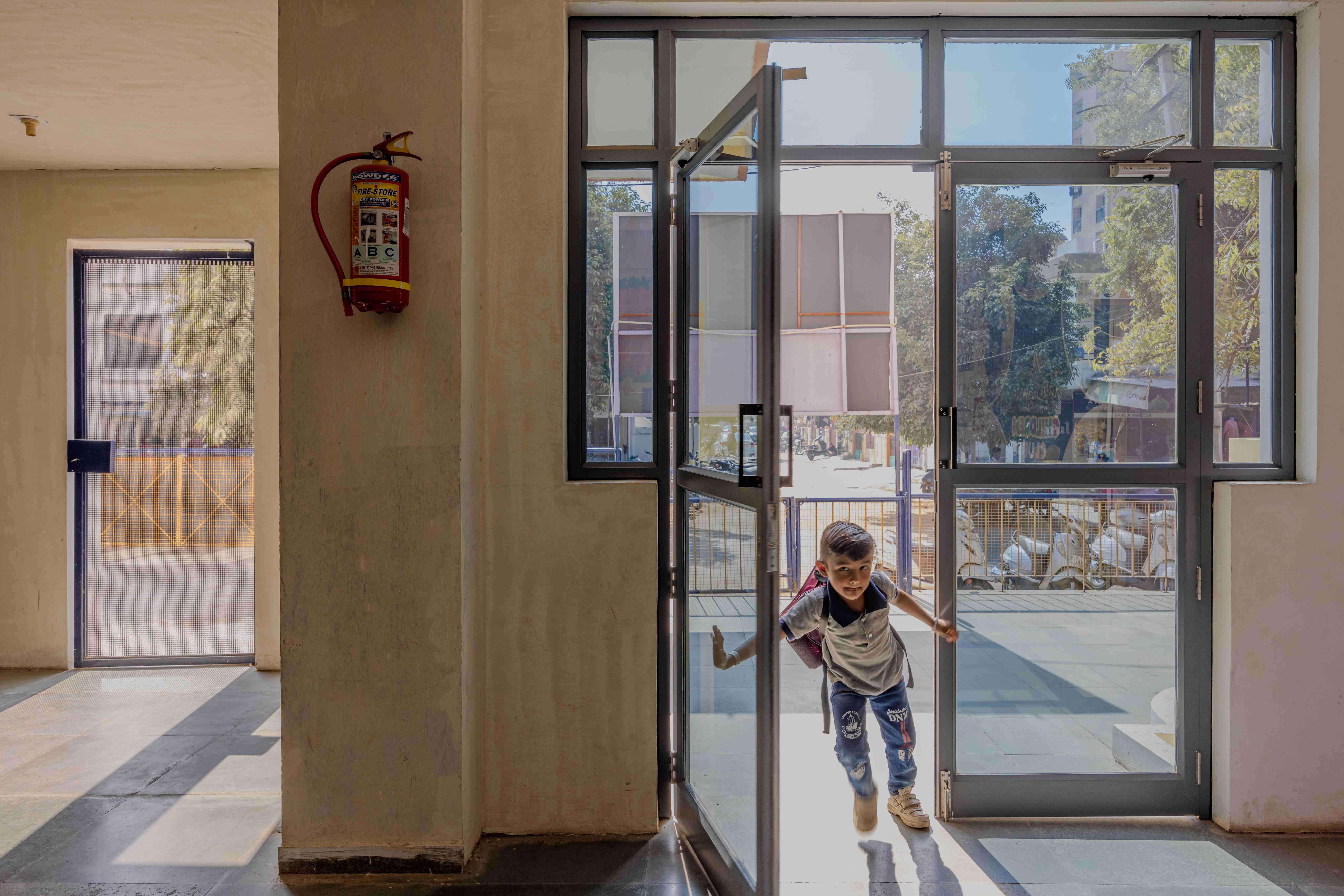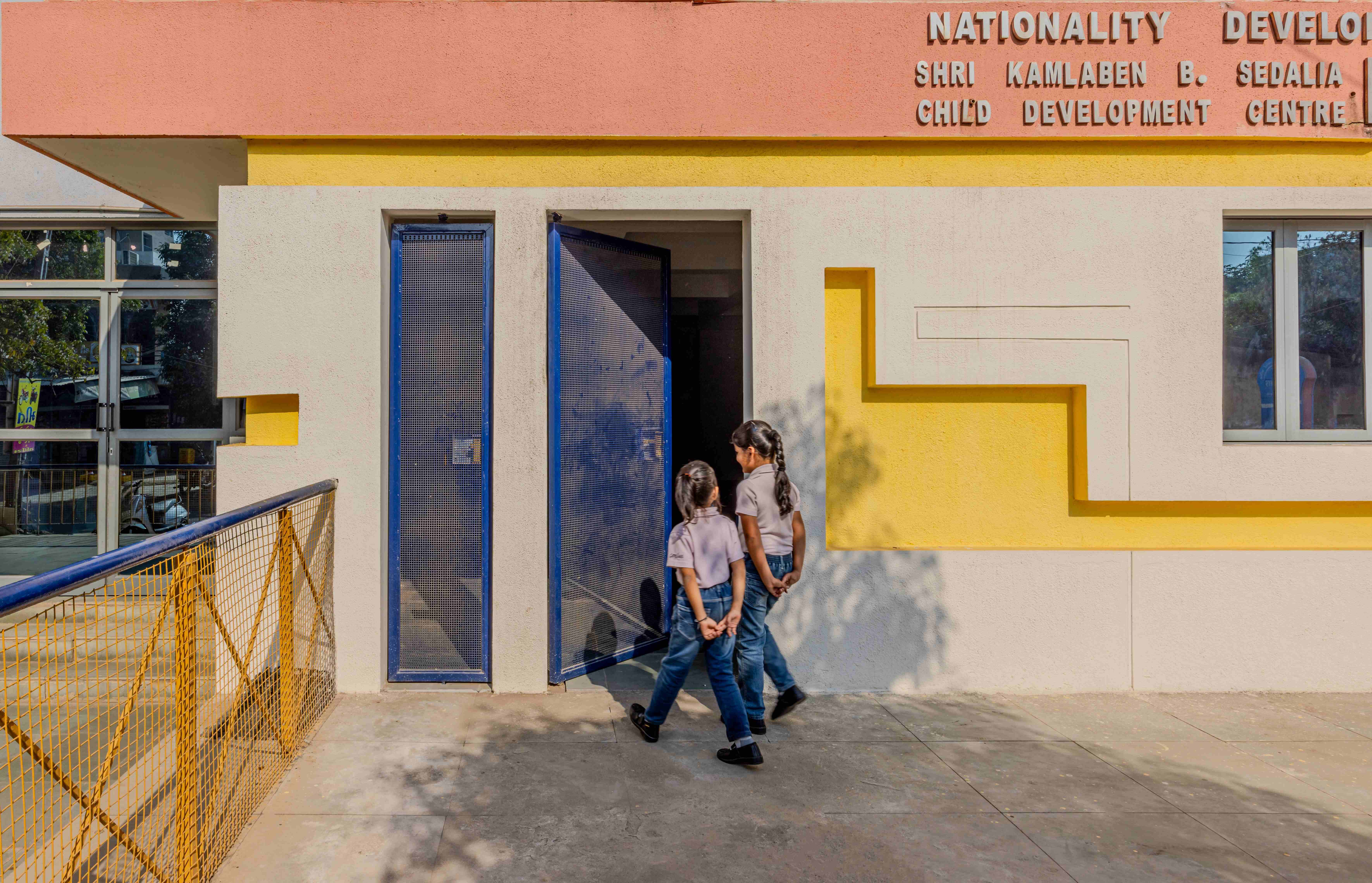 The metal door and windows create a unique experience between the inside and outside making it more of playschool.