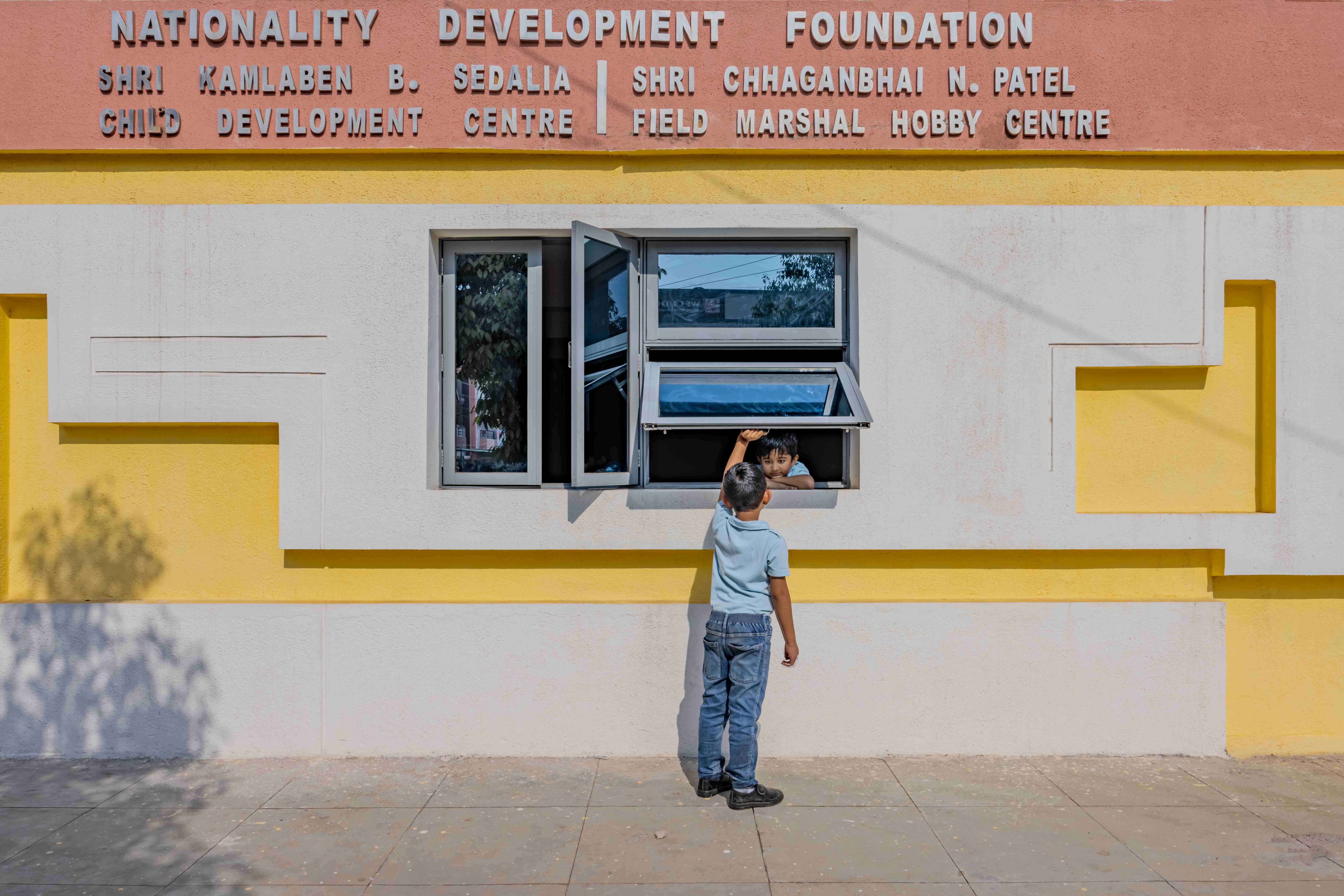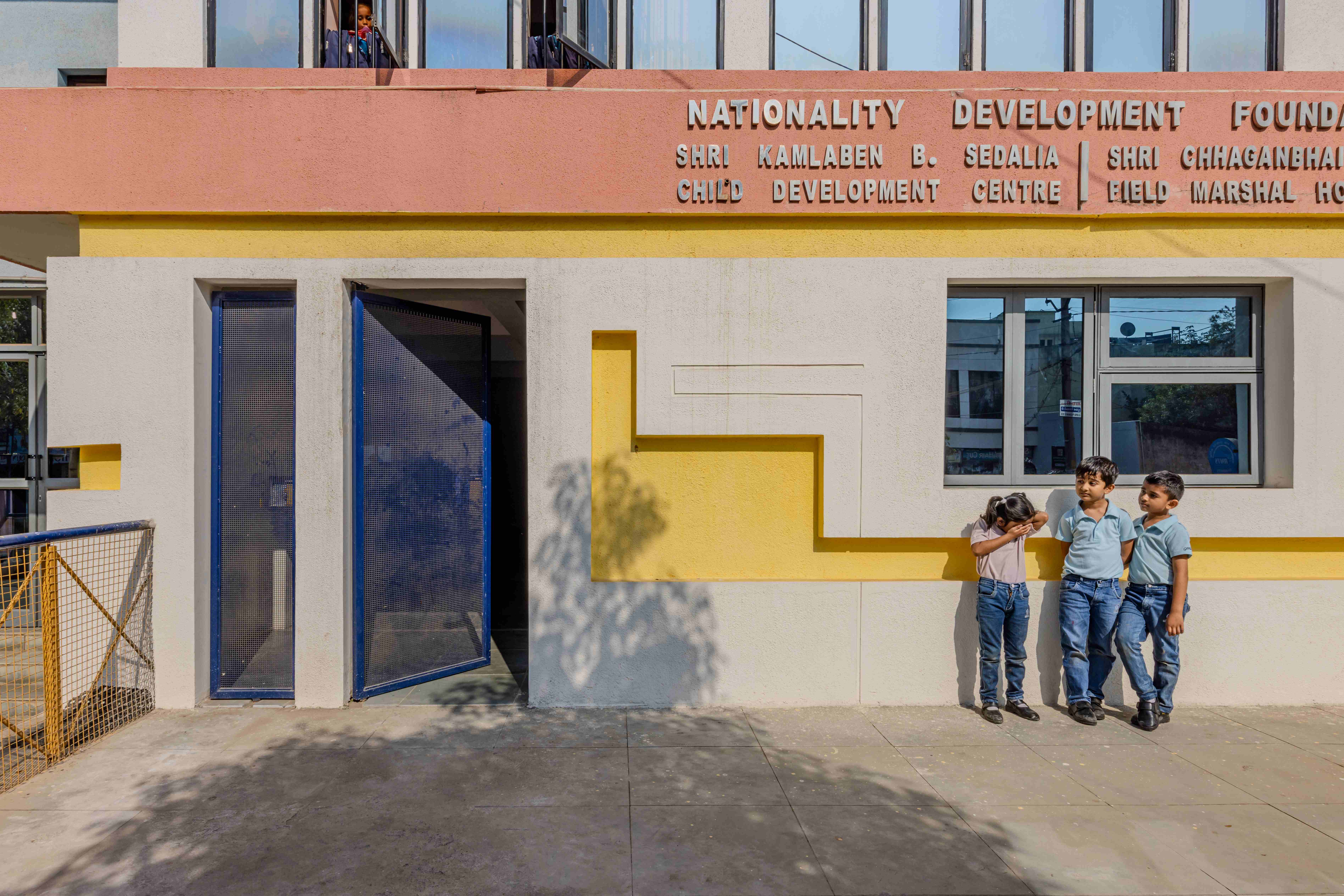 The façade indulges various lines and forms, making it interactive and proactive for the students to engage with and then with themselves too.The nature of a solid wall is breaking through lines, forms, and windows, creating their own stories with their own unique nature in the façade.