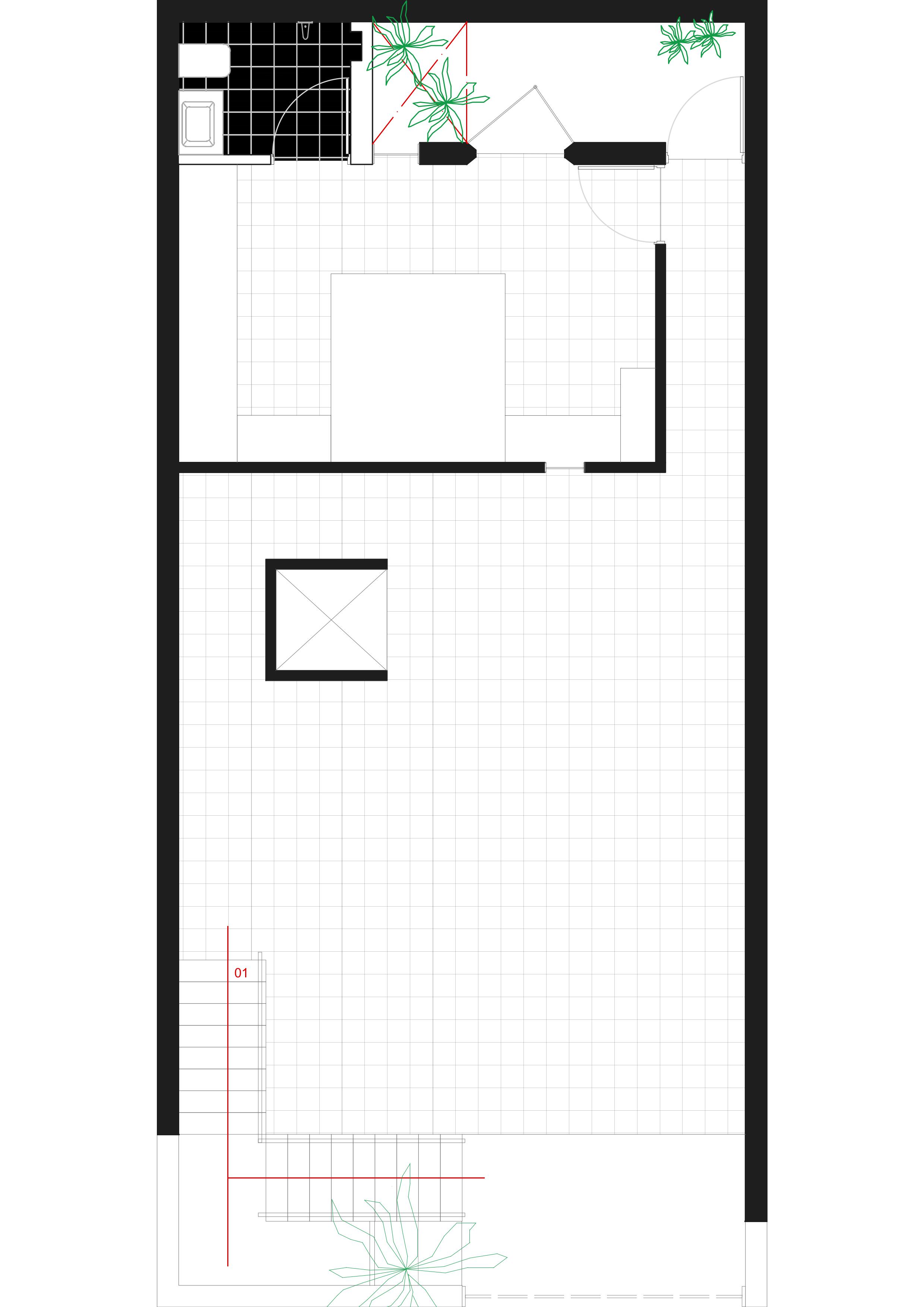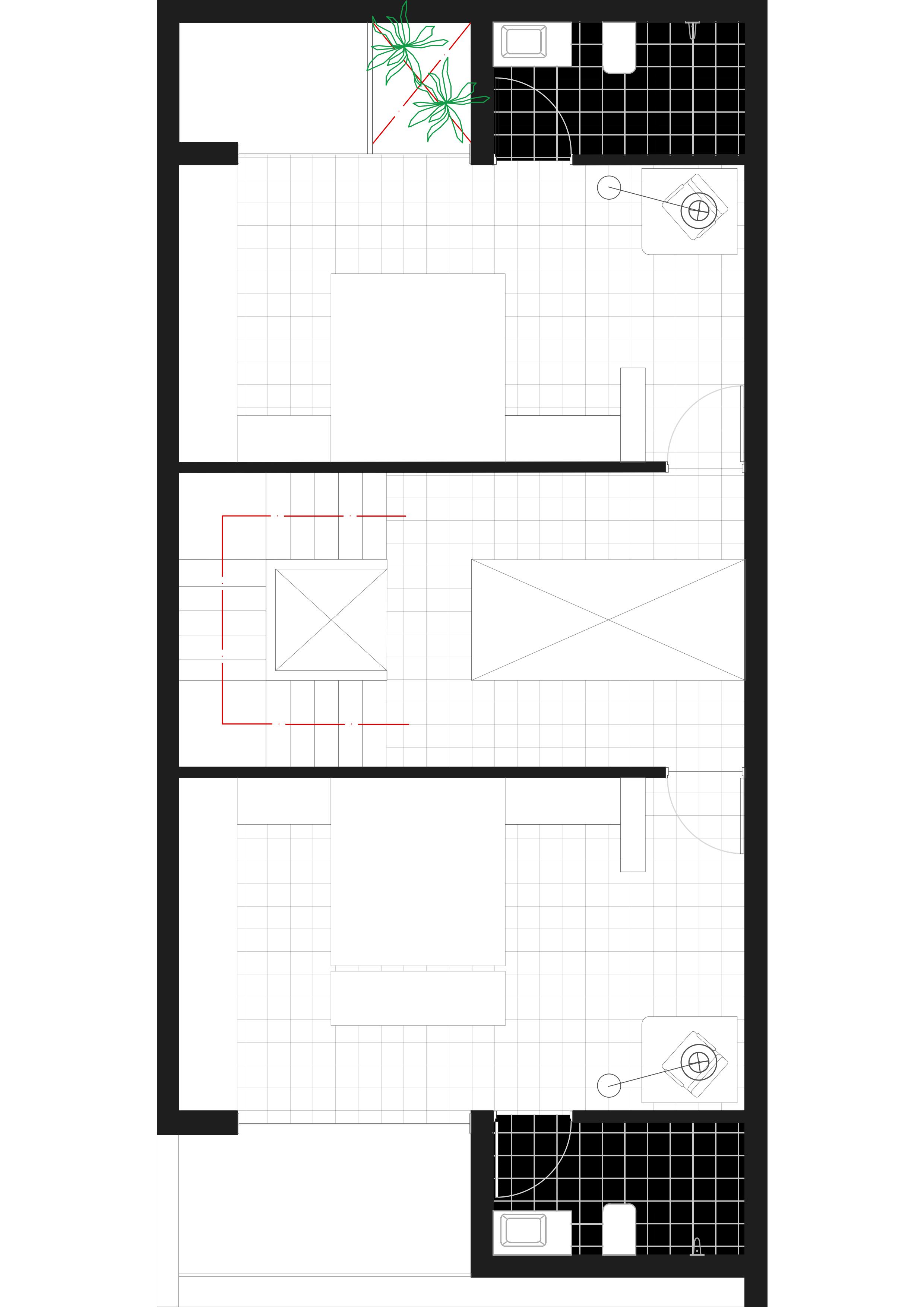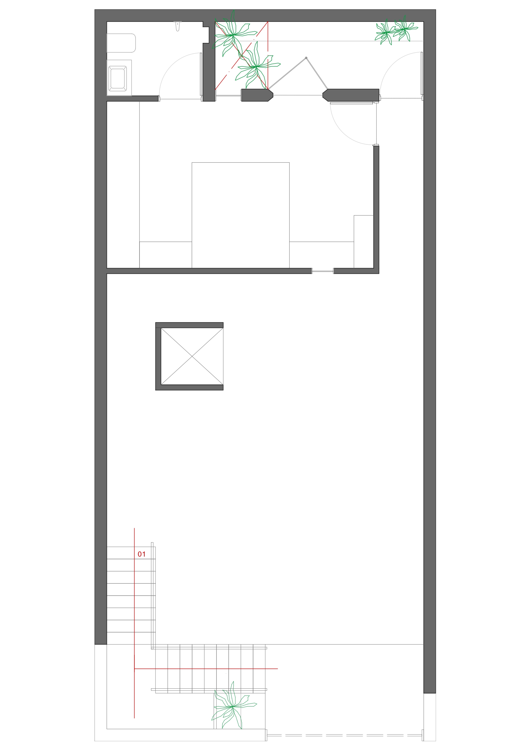 An unbuilt residence for a family of four, designed on a 21’ x 45’ west-facing plot in the heart of the bustling old city. Set within a gated community and surrounded by the dense urban fabric, the project posed a clear challenge to craft a functional layout and comfortable living environment within a compact footprint.