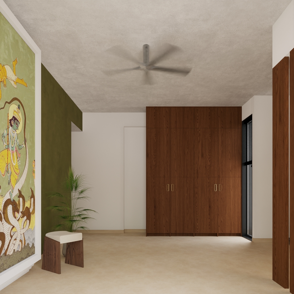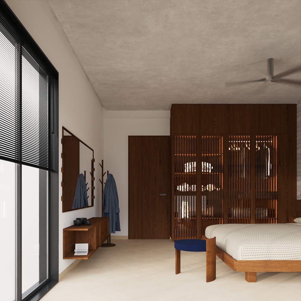 This concept note outlines the interior and spatial design approach for a 2200 sq ft apartment in Rajkot, designed for an elderly couple with an emphasis on comfort, accessibility, warmth, and intellectual engagement. The home includes a dedicated library room, generous bedrooms, and calm, light-filled living spaces suited to the climate and lifestyle of Rajkot. The design language blends contemporary minimalism with Indian warmth, using natural materials, muted colors, and handcrafted details. The apartment is conceived as a quiet retreat that supports slow living, reading, and daily rituals, while remaining practical and easy to maintain.