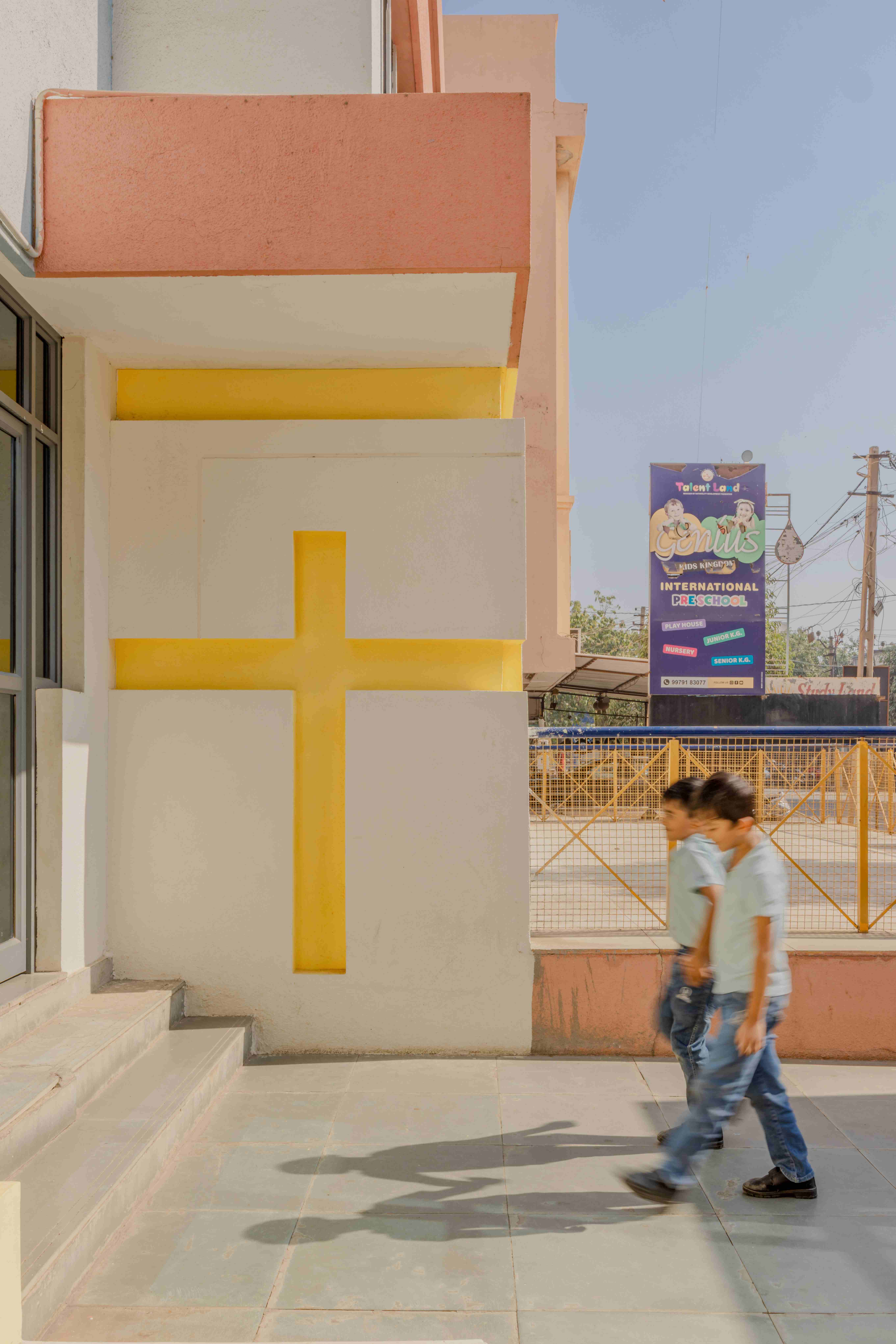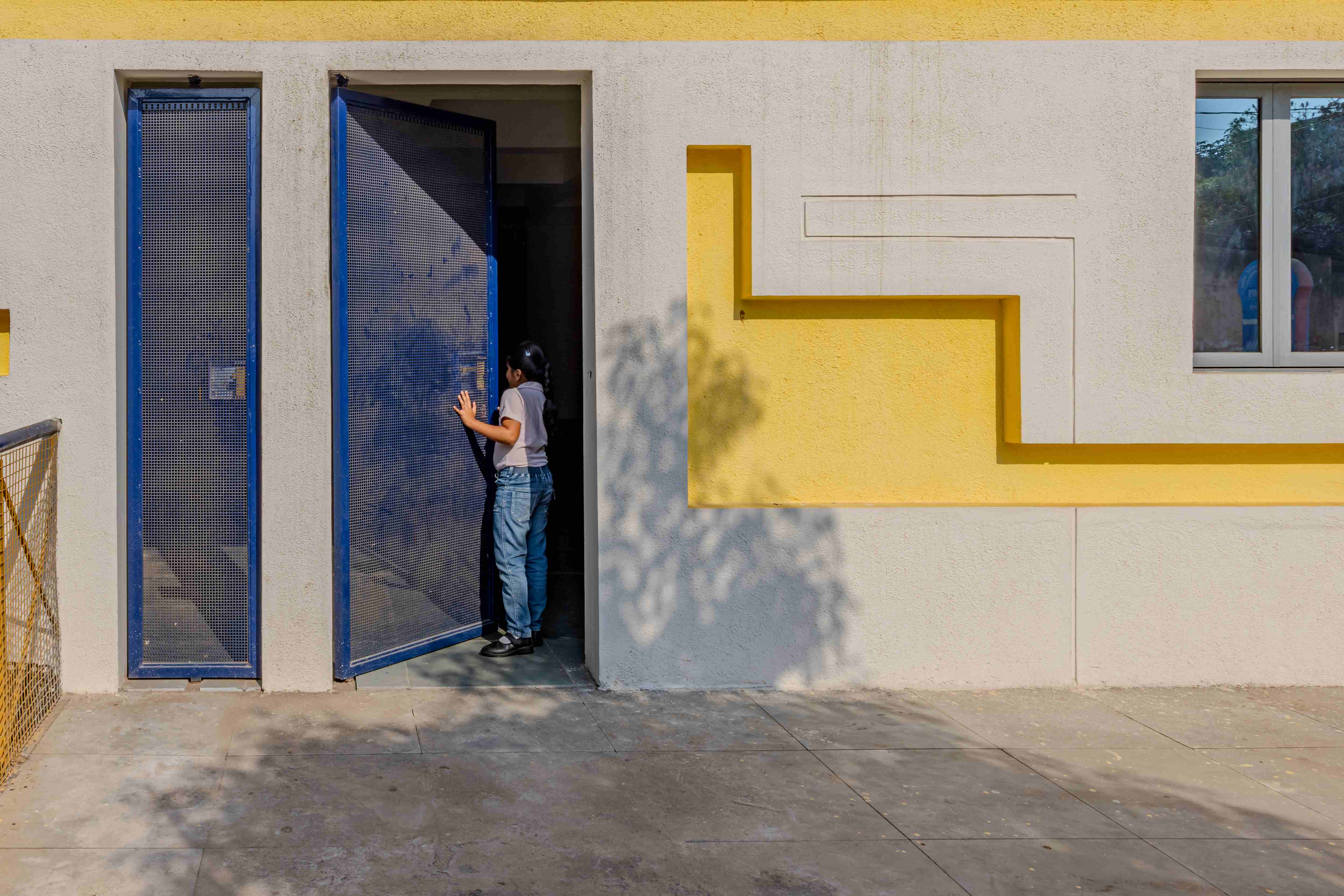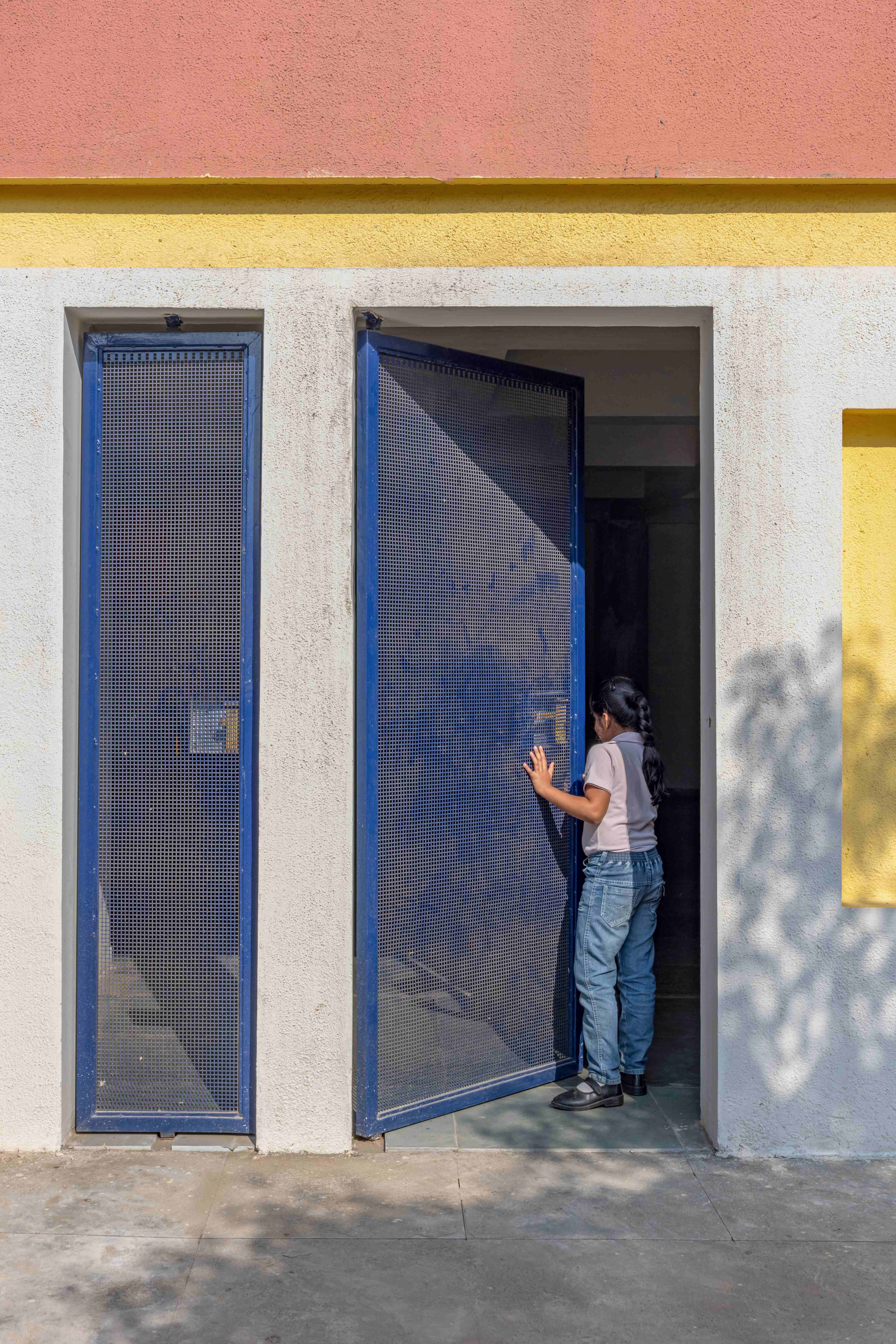 The façade indulges various lines and forms, making it interactive and proactive for the students to engage with and then with themselves too.The nature of a solid wall is breaking through lines, forms, and windows, creating their own stories with their own unique nature in the façade.